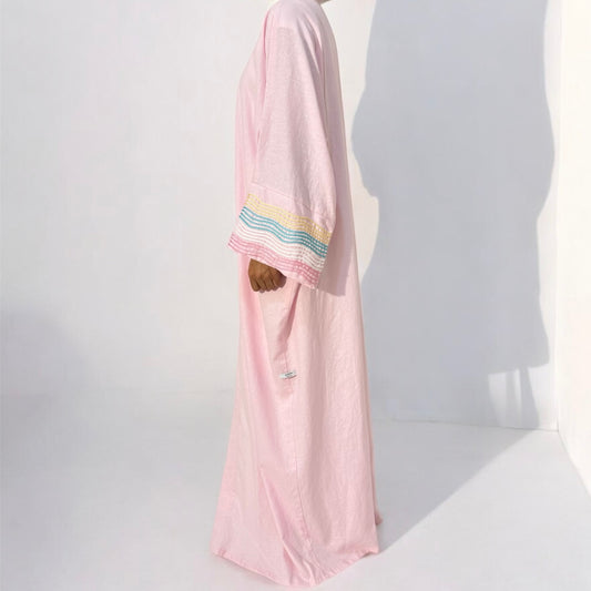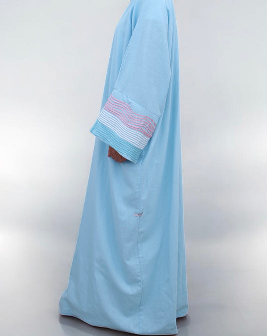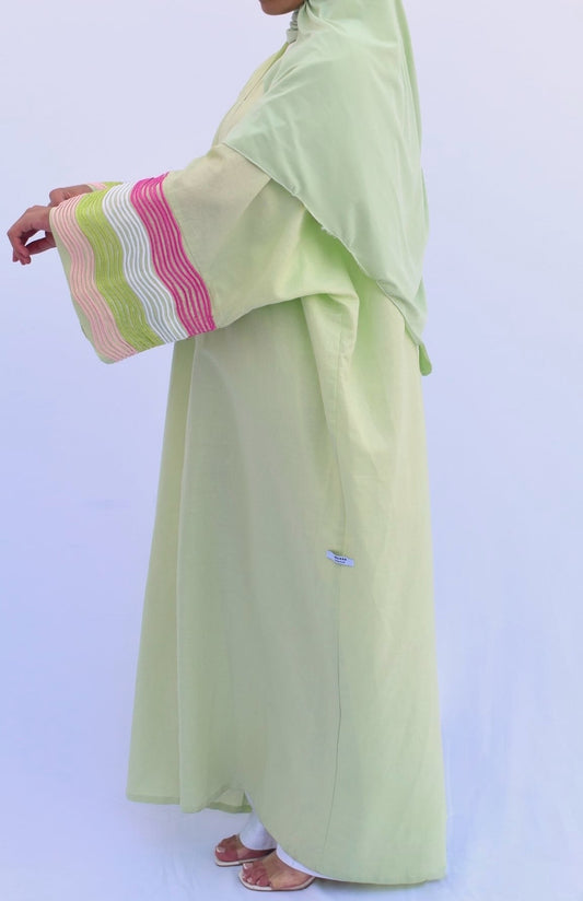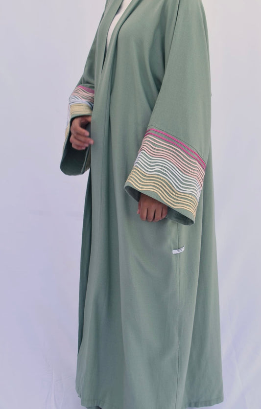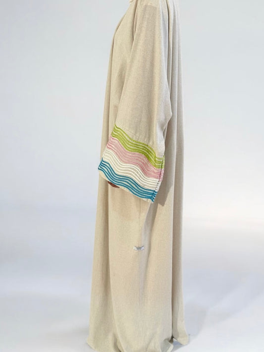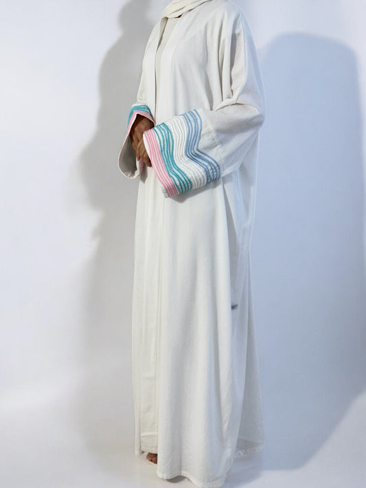 "Aura" – une collection qui capture l’aura délicate de chaque femme. Inspirée par les doux instants d’été, cette ligne allie des tissus légers en lin à des tons pastel apaisants et à une élégance minimaliste. Chaque abaya raconte une histoire de légèreté, de clarté et d’élégance naturelle. Aura incarne un sentiment – une touche de style, un regard de sérénité et une expression de force intérieure.